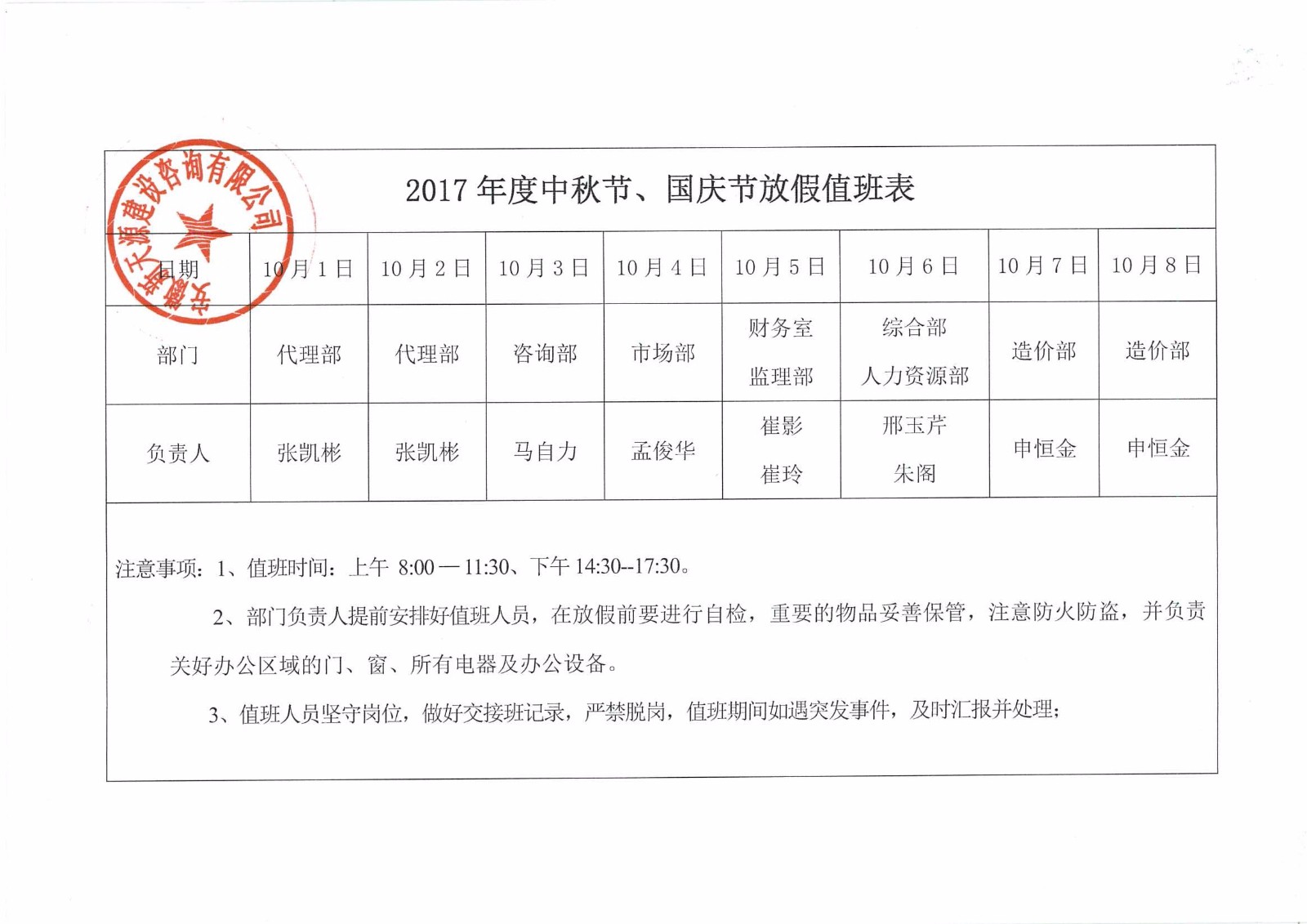 2017年度中秋節、國慶節放假通知